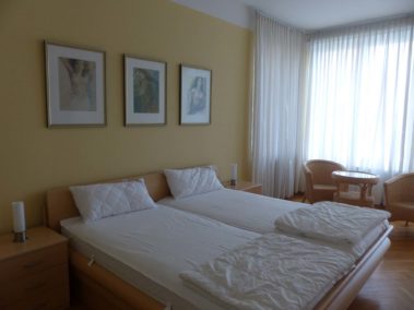 Das kleine Ferienhaus Rosengarten, befindet sich mit auf dem abgeschlossenen Grundstück zusammen mit dem Ferienhaus Villa Rosengarten, hat 2 Doppelzimmer, jeweils mit Dusche, WC und TV ausgestattet und hat eine eigene Terrasse mit Seeblick.